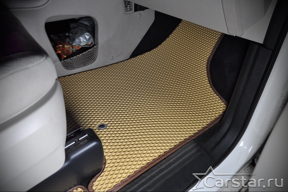 Автомобильные коврики EVA прекрасно подходят для всех существующих марок и моделей авто, здесь вы сможете заказать оптимальный аксессуар любого возможного цвета. По размерам они больше, чем стандартные резиновые коврики, поэтому покрывают максимальную площадь пола в салоне. А двойная система креплений (клипсы и липучки) позволяет надежно зафиксировать коврики в нужном месте.