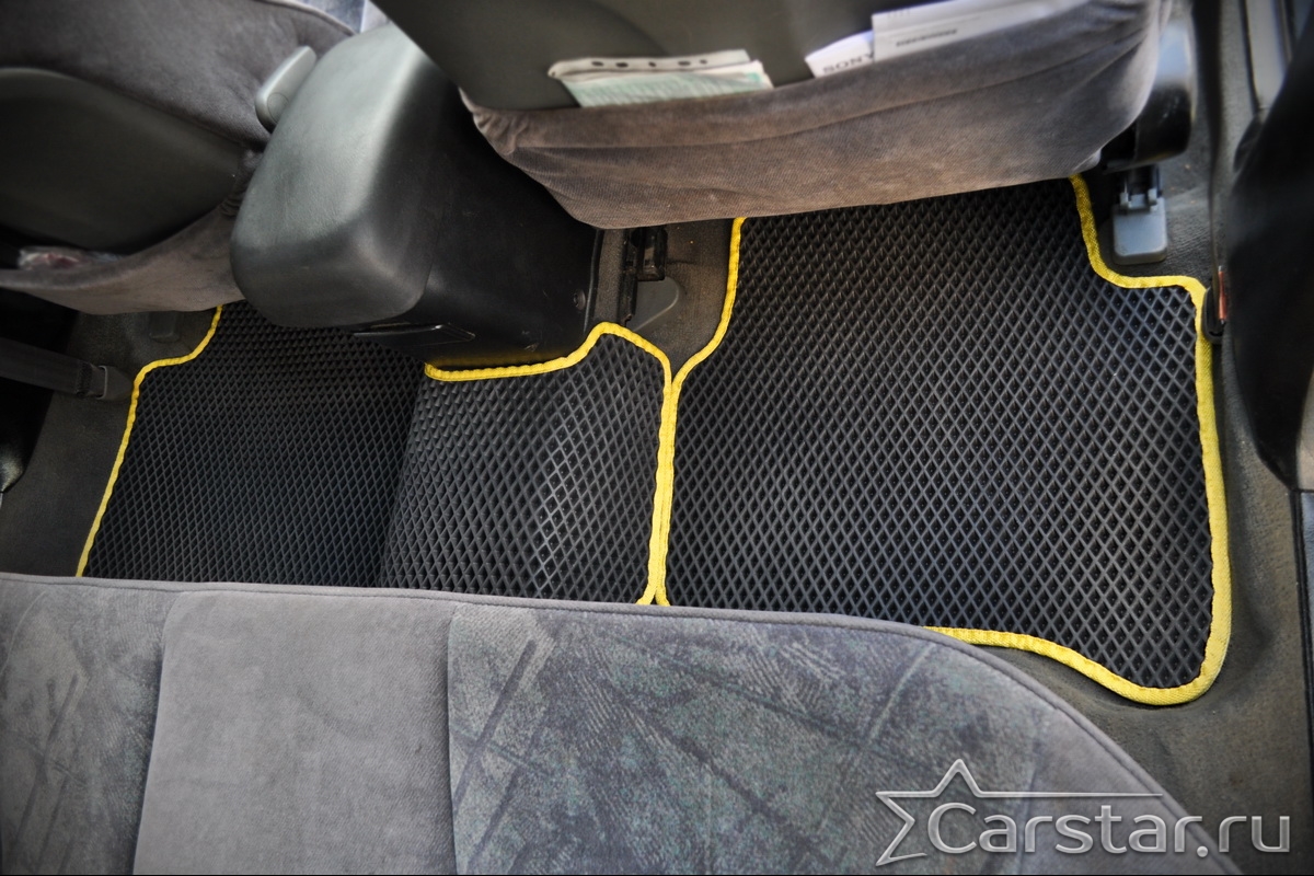 Толщина ковриков EVA составляет 10-12 мм. Глубина ячеек 7-8 мм. Такая толщина ковриков позволяет им служить довольно долго, не протираясь до 3 лет. А благодаря такой глубине ячеек коврик EVA площадью 1 кв.м. способен захватить около 3,5 л жидкости, сохраняя в чистоте вашу обувь и обивку салона.