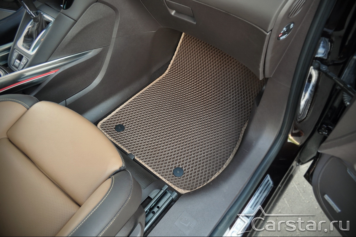Автомобильные коврики EVA прекрасно подходят для всех существующих марок и моделей авто, здесь вы сможете заказать оптимальный аксессуар любого возможного цвета. По размерам они больше, чем стандартные резиновые коврики, поэтому покрывают максимальную площадь пола в салоне. А двойная система креплений (клипсы и липучки) позволяет надежно зафиксировать коврики в нужном месте.