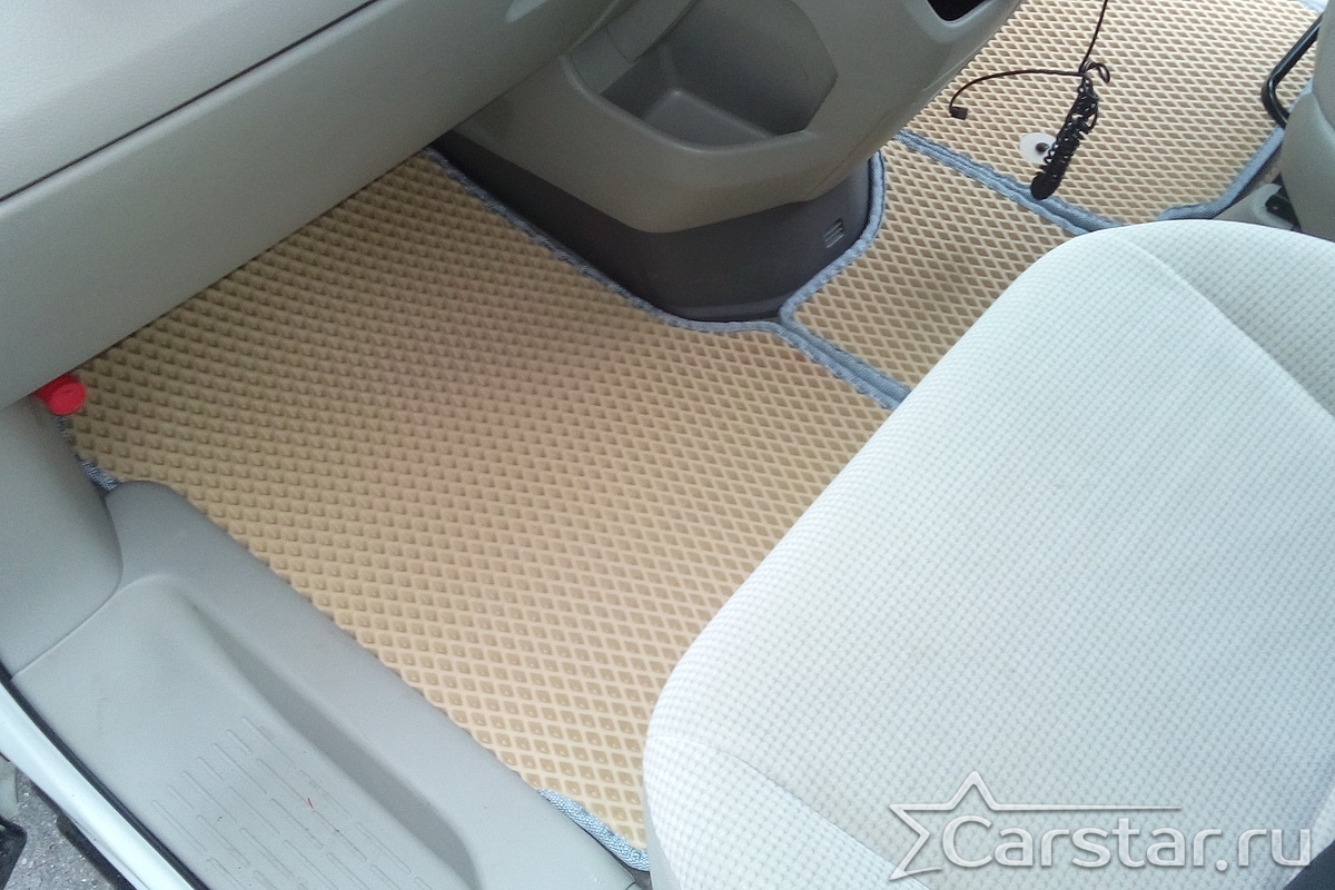 Толщина ковриков EVA составляет 10-12 мм. Глубина ячеек 7-8 мм. Такая толщина ковриков позволяет им служить довольно долго, не протираясь до 3 лет. А благодаря такой глубине ячеек коврик EVA площадью 1 кв.м. способен захватить около 3,5 л жидкости, сохраняя в чистоте вашу обувь и обивку салона.