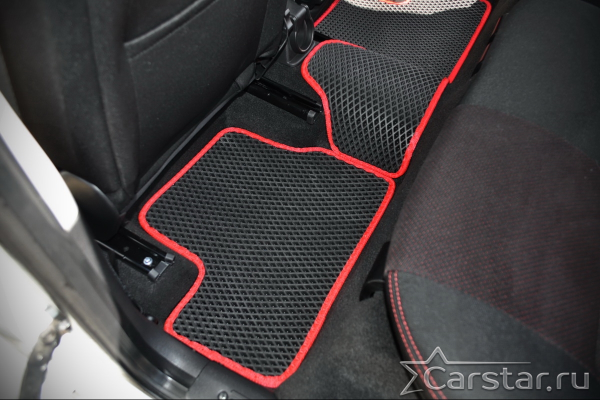 Текстильные коврики надёжно крепятся с помощью оригинальных систем фиксации. Обратная сторона имеет противоскользящее покрытие, что обеспечивает защиту от смещений и безопасность. Максимальное удобство достигается точными лекалами.