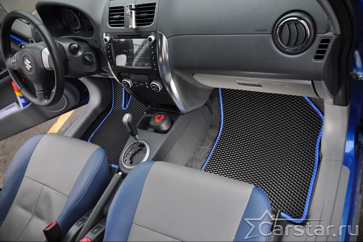 Текстильные автомобильные коврики Suzuki SX4 I (2006-2013) – это классический аксессуар, который обеспечит салону автомобиля неизменную чистоту, порядок и уют. Компания Carstar предлагает изделия из качественного ковролина в сочетании с полипропиленовым основанием на шипах, такая комбинация делает их прочными и водонепроницаемыми.